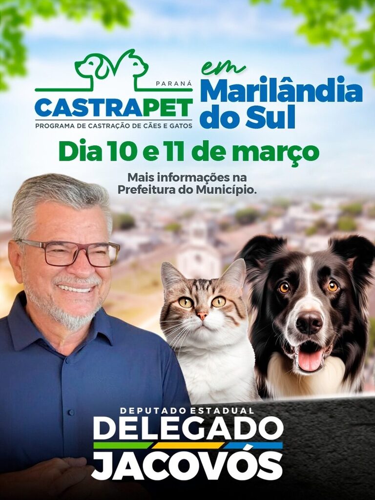 O município de Marilândia do Sul, no Vale do Ivaí, receberá nos dias 10 e 11 de março mais uma edição do Castrapet Paraná, programa estadual voltado à castração gratuita de cães e gatos. A ação tem como objetivo controlar a população de animais, promover o bem-estar animal e contribuir para a saúde pública.